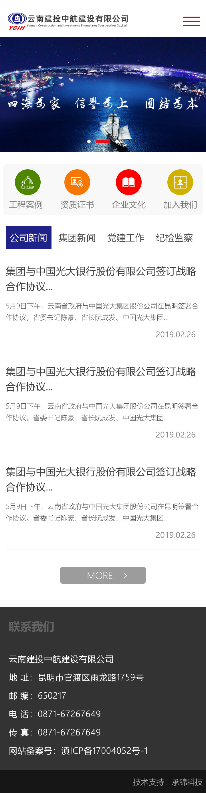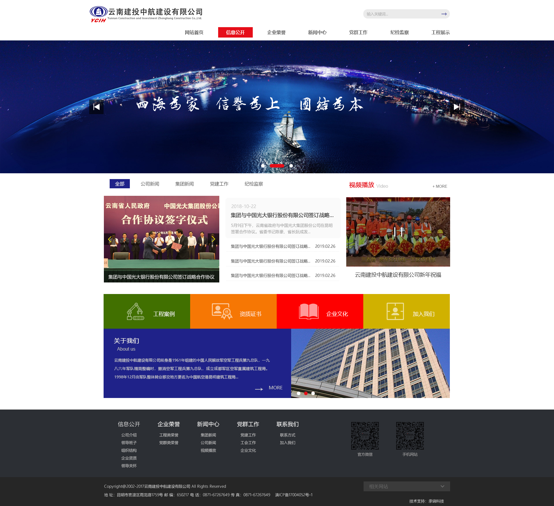 云南建投中航建設(shè)有限公司(簡(jiǎn)稱“建投中航公司”)是云南建設(shè)投資控股集團(tuán)有限公司的全資子公司,企業(yè)注冊(cè)資本金1.5億元。公司擁有市政公用工程施工總承包壹級(jí),公路工程、水利水電工程、房屋建筑工程和港口與航道工程施工總承包貳級(jí)、混凝土預(yù)制構(gòu)件專業(yè)貳級(jí)和城市及道路照明工程專業(yè)承包叁級(jí)資質(zhì)?,F(xiàn)有在職員工600余人,其中一級(jí)建造師22人,高級(jí)工程師45人,中級(jí)工程師190人。云南建投中航建設(shè)有限公司官方網(wǎng)站由云南承錦科技有限公司提供技術(shù)支持,網(wǎng)站包含欄目:公司概況、企業(yè)榮譽(yù)、工程管理、新聞中心、黨群之窗、紀(jì)檢監(jiān)察、企業(yè)文化和聯(lián)系我們等欄目等。